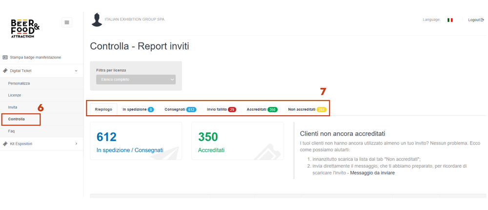 Dopodichè, potrai selezionare "controlla" dal menu di sinistra e monitorare l’andamento degli inviti. Le notifiche vengono spedite nell’arco di pochi minuti.