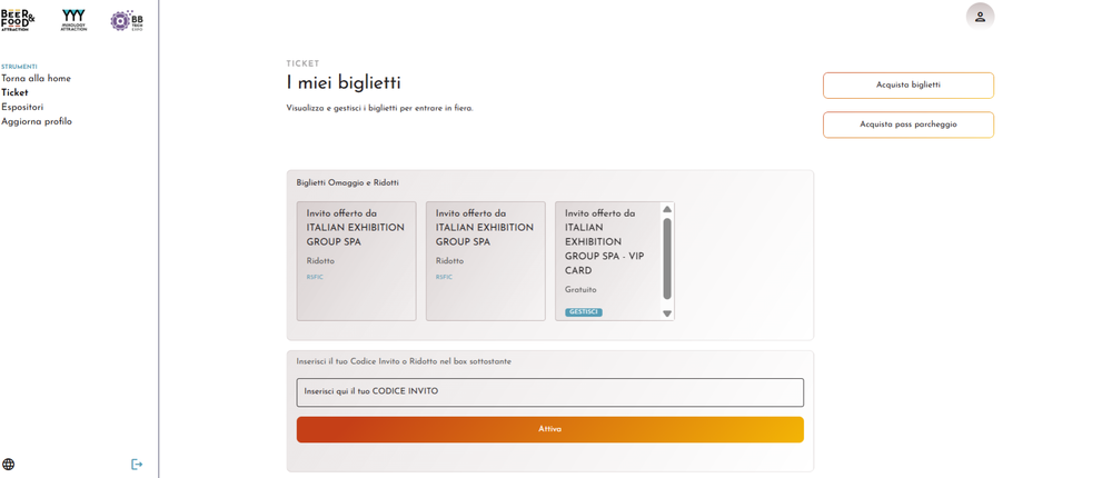 Nella sua area riservata il visitatore potrebbe avere anche altri biglietti, offerti da altre aziende. Se vuoi che entri con il tuo biglietto, dovrai segnalargli di fare attenzione a scaricare proprio quello! Ricordati che è contrassegnato da “Biglietto offerto da + tua ragione sociale”.