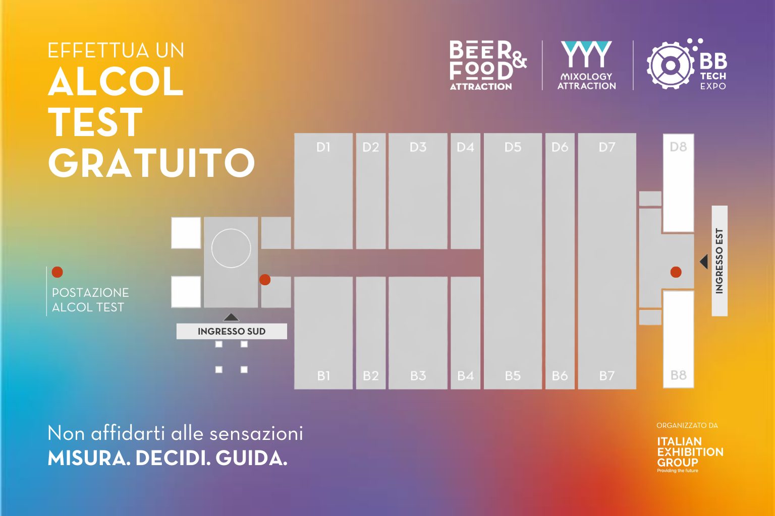 Durante la manifestazione, in Hall Sud e Hall Est, è attivo un punto alcol test gratuito, con strumentazione professionale certificata. Un servizio pensato per permetterti di verificare il tuo tasso alcolemico e scegliere con consapevolezza prima di metterti alla guida.